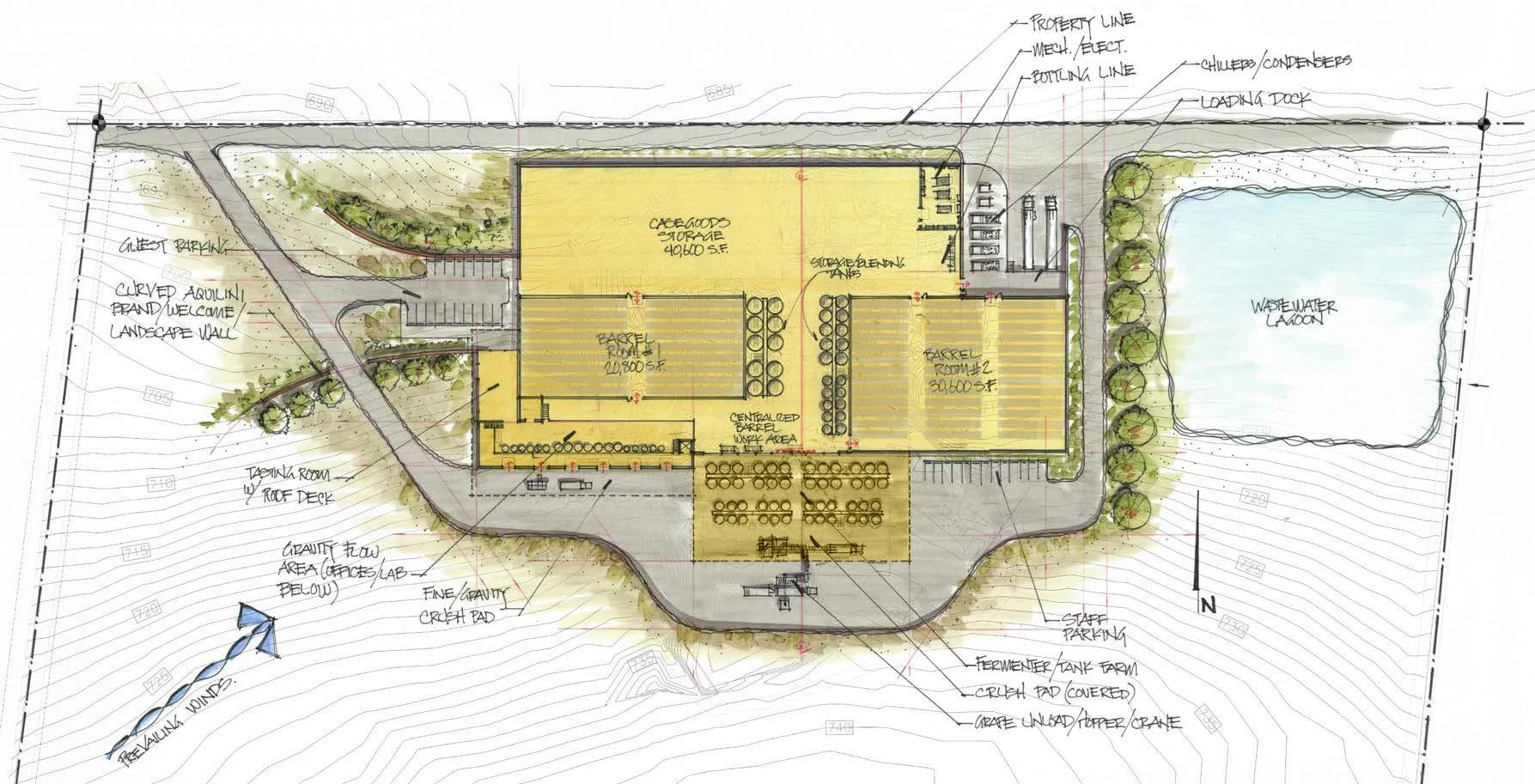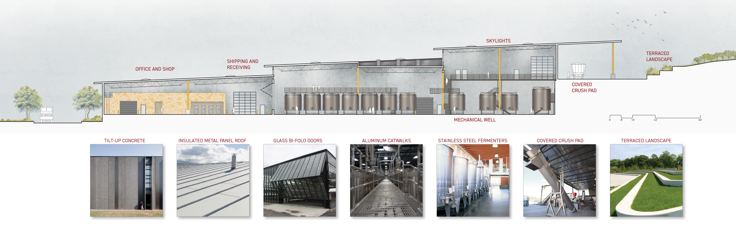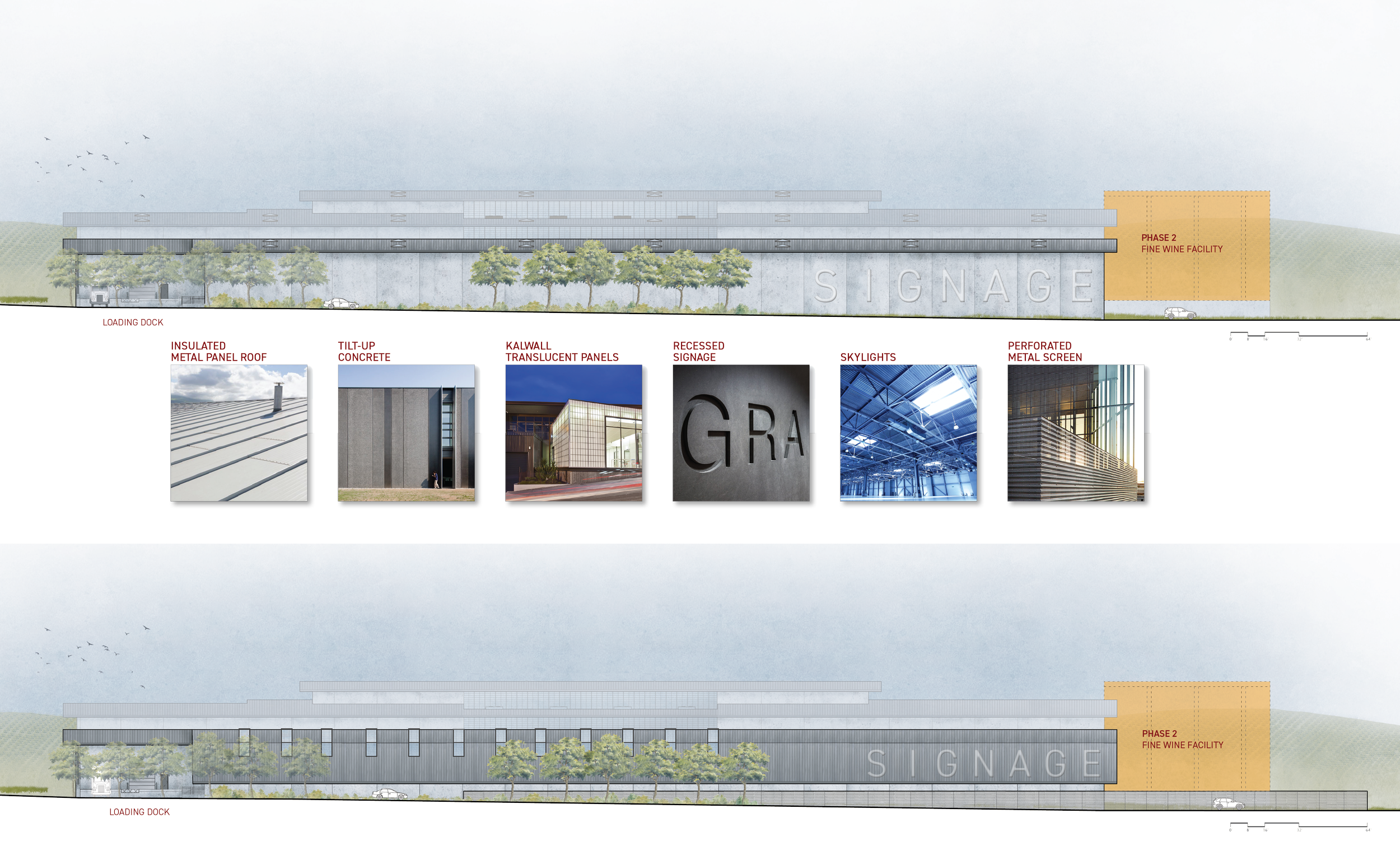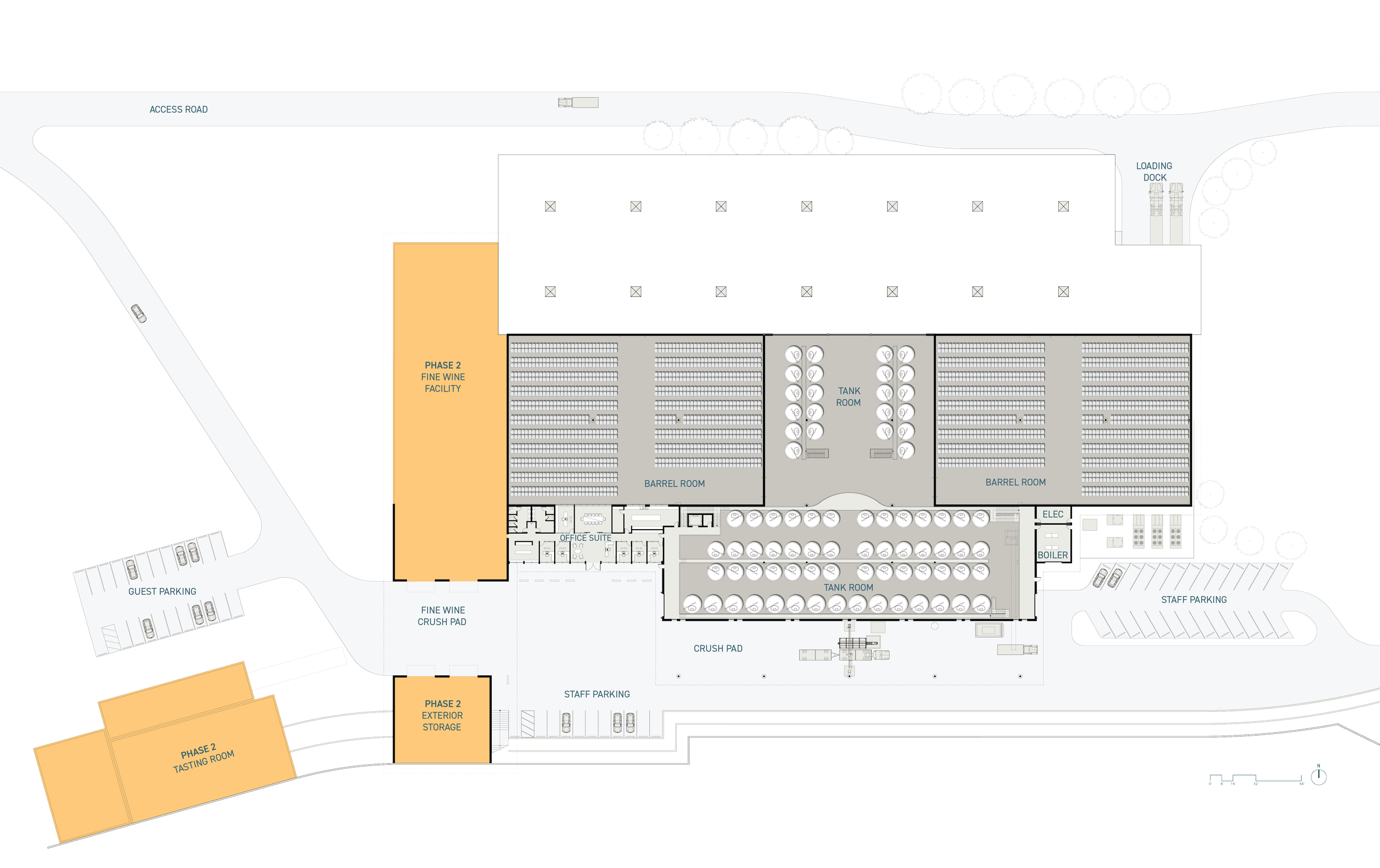 Phase 2 will add a tasting room, fine wine facility, and additional storage, taking this building from internal process to a welcoming space for visitors to learn the wine making process.